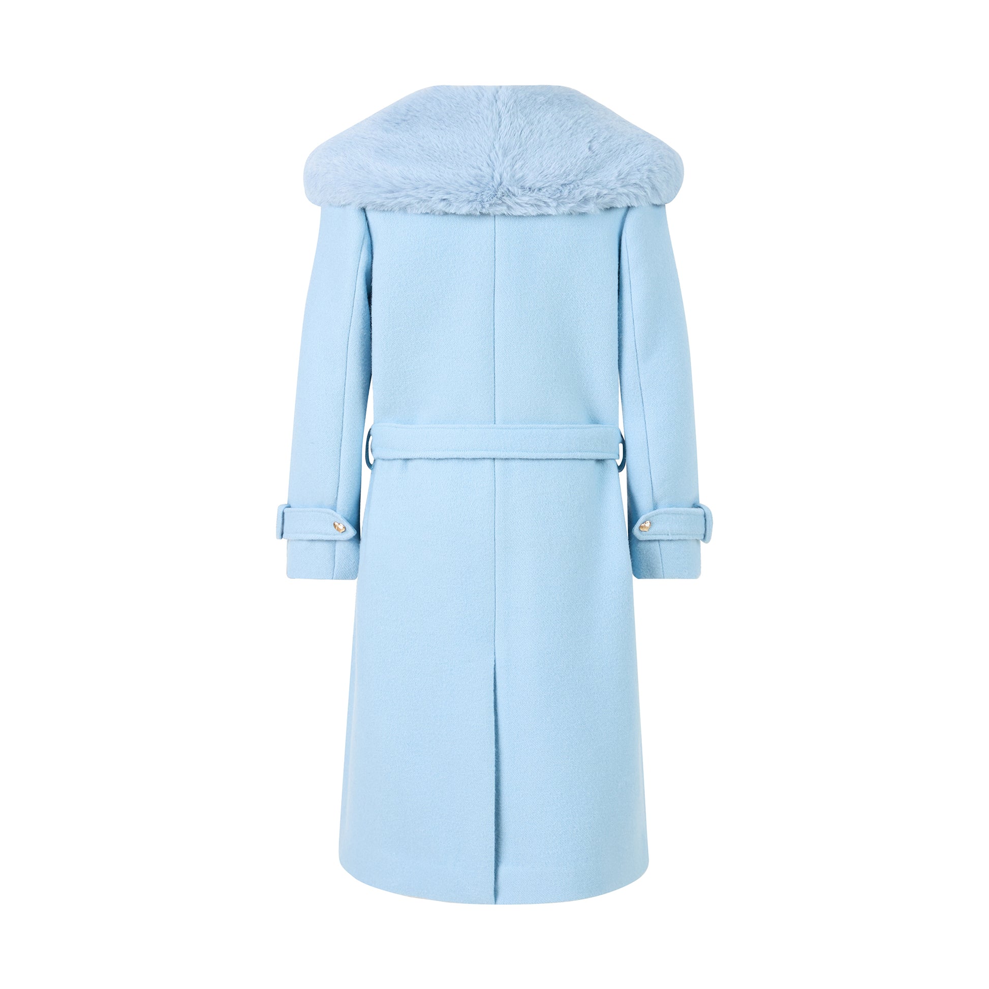 Combining softness with elegance, this coat offers both comfort and a striking appearance. Features include a single-breasted design, fur-trimmed lapels, full-length sleeves with button-tab cuffs, side flap pockets, and a luxurious floral print lining. Crafted from 60% wool and 40% polyester for lasting quality.