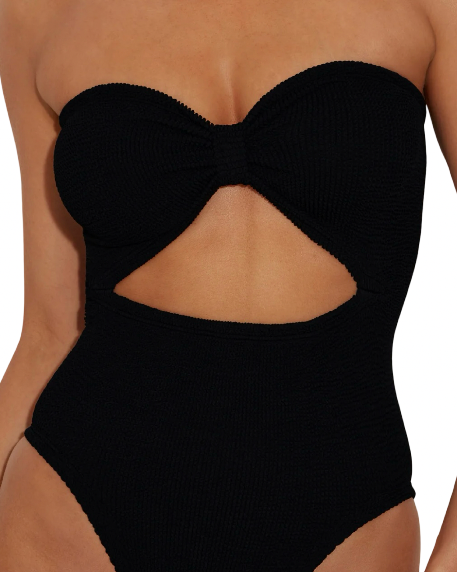 Indulge in unparalleled comfort with the original crinkle swimsuit from Hunza G, a perfect blend of luxury and ease. Embrace effortless style with this versatile one piece, featuring a front cutout for added allure. One Size Fits all.