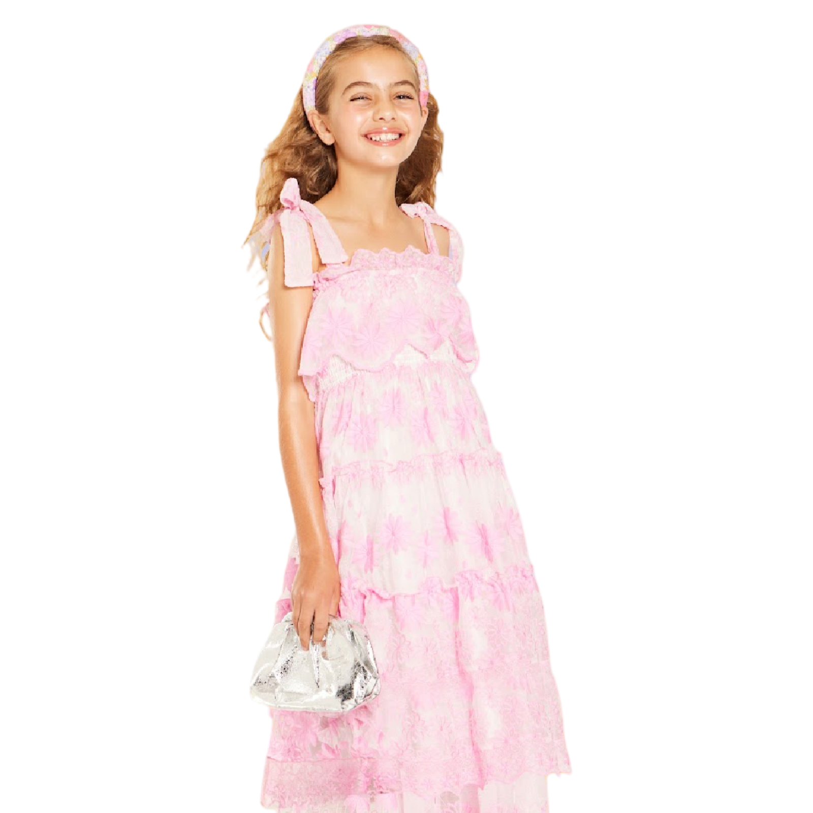 This coveted dress has returned in a fresh new Pink hue, with lace detailing and elegant bow ties that can be adjusted to your desired length. The side zipper ensures effortless dressing and undressing. Also offered in Coral.