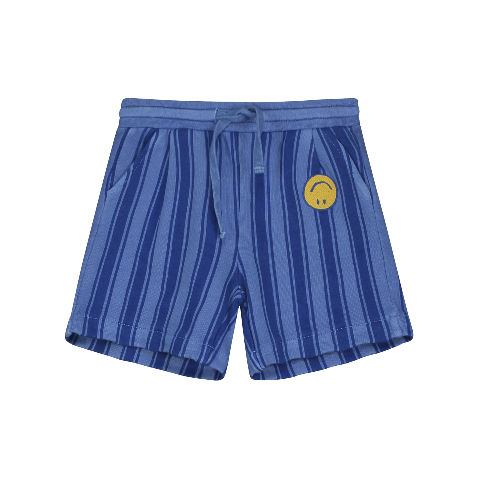 Experience comfort and style with these blue striped fleece shorts, complete with a convenient drawstring.
