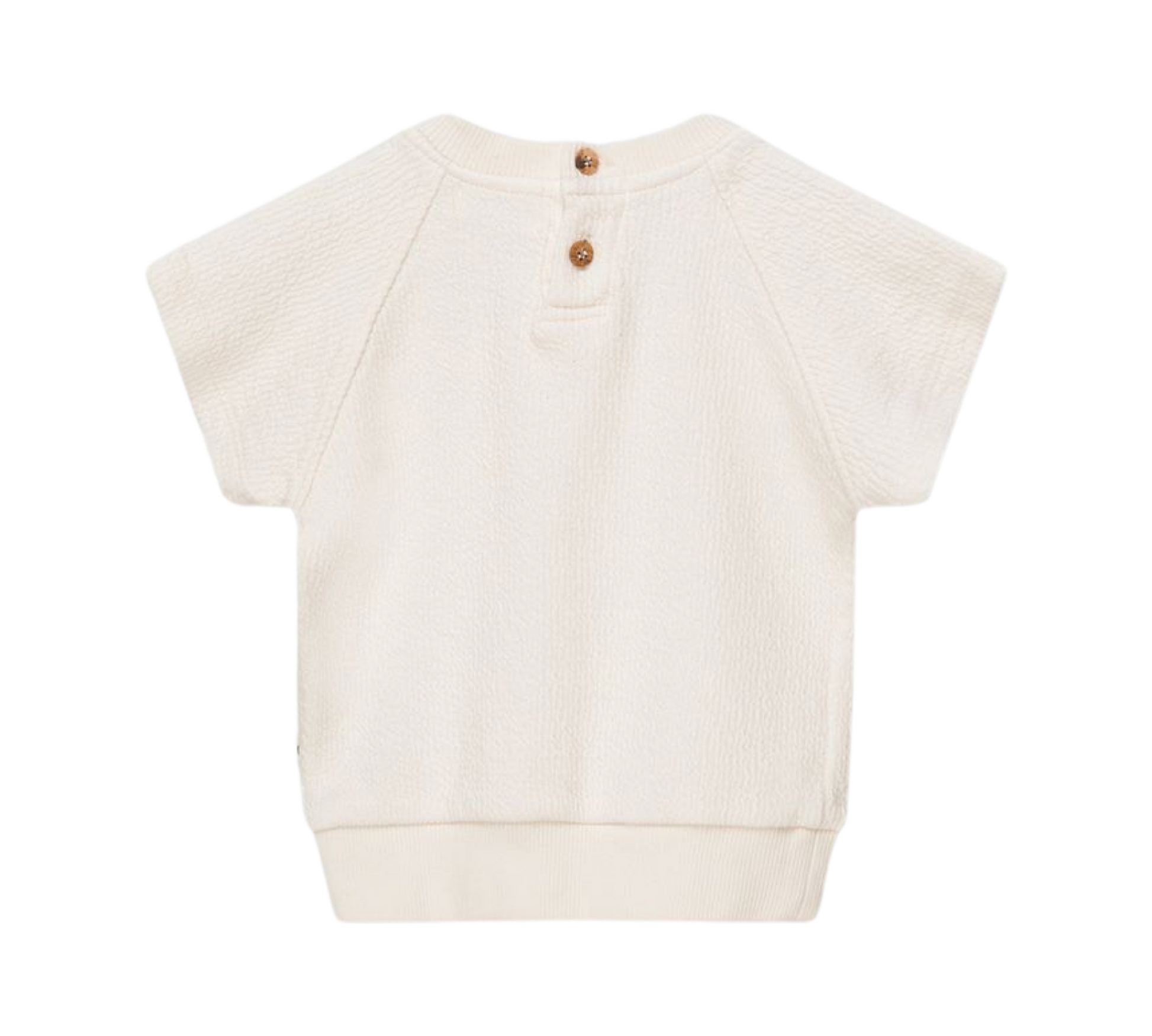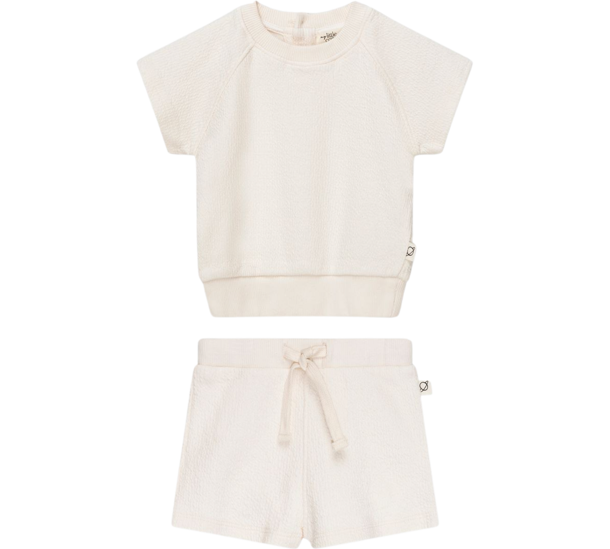 Short Sleeve baby top with Bermuda shorts. 100% Organic cotton knit with texture.