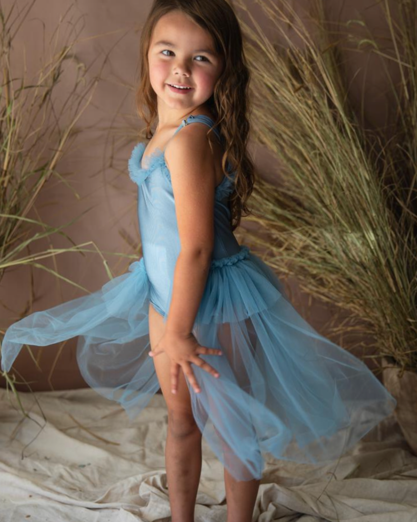 This handmade tulle dress features a versatile leotard fabric and adjustable straps, making it the ideal choice for whimsical adventures and carefree play.