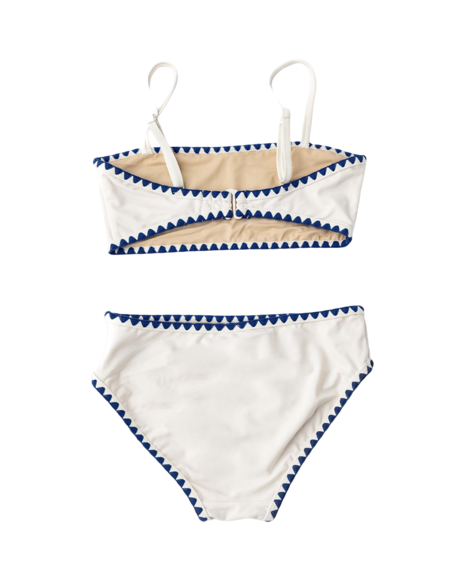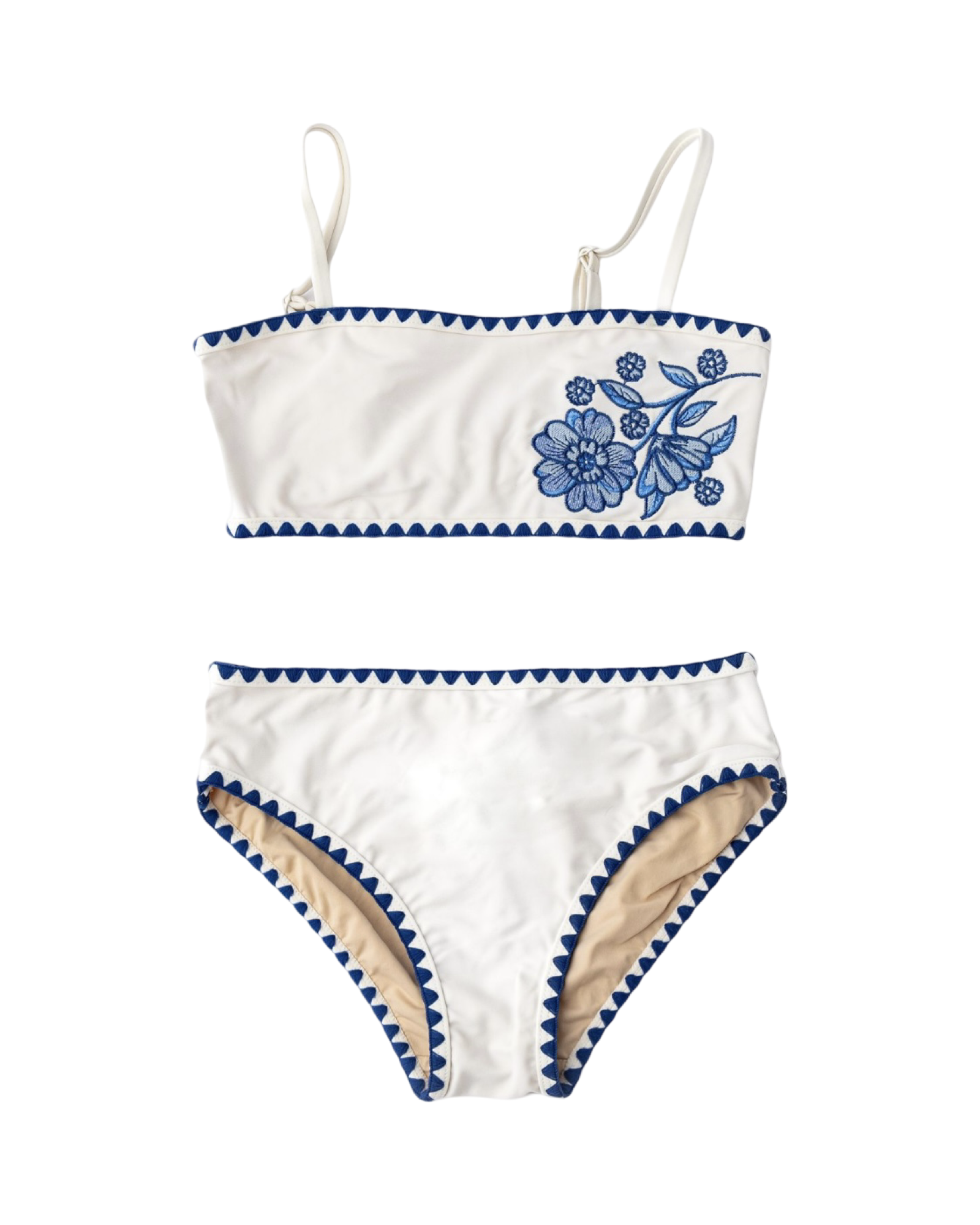 Complete your summer outfit with our stunning white bikini featuring beautiful embroidered details, paired perfectly with our Pomegranate pants and vest.