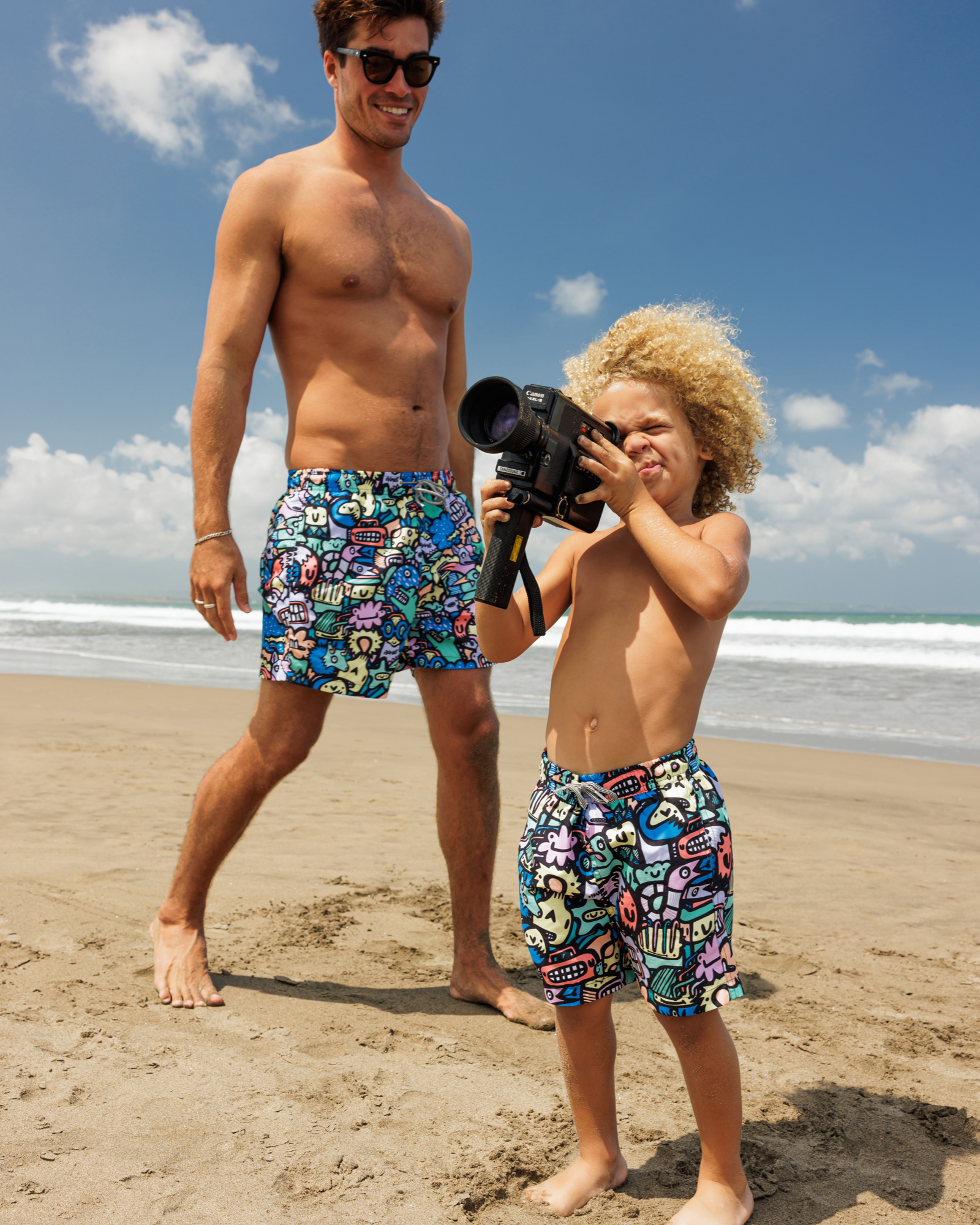 They're made from 100% super-soft, quick drying recycled REPREVE® polyester and come in a mid length. Each pair comes with a matching swim bag.