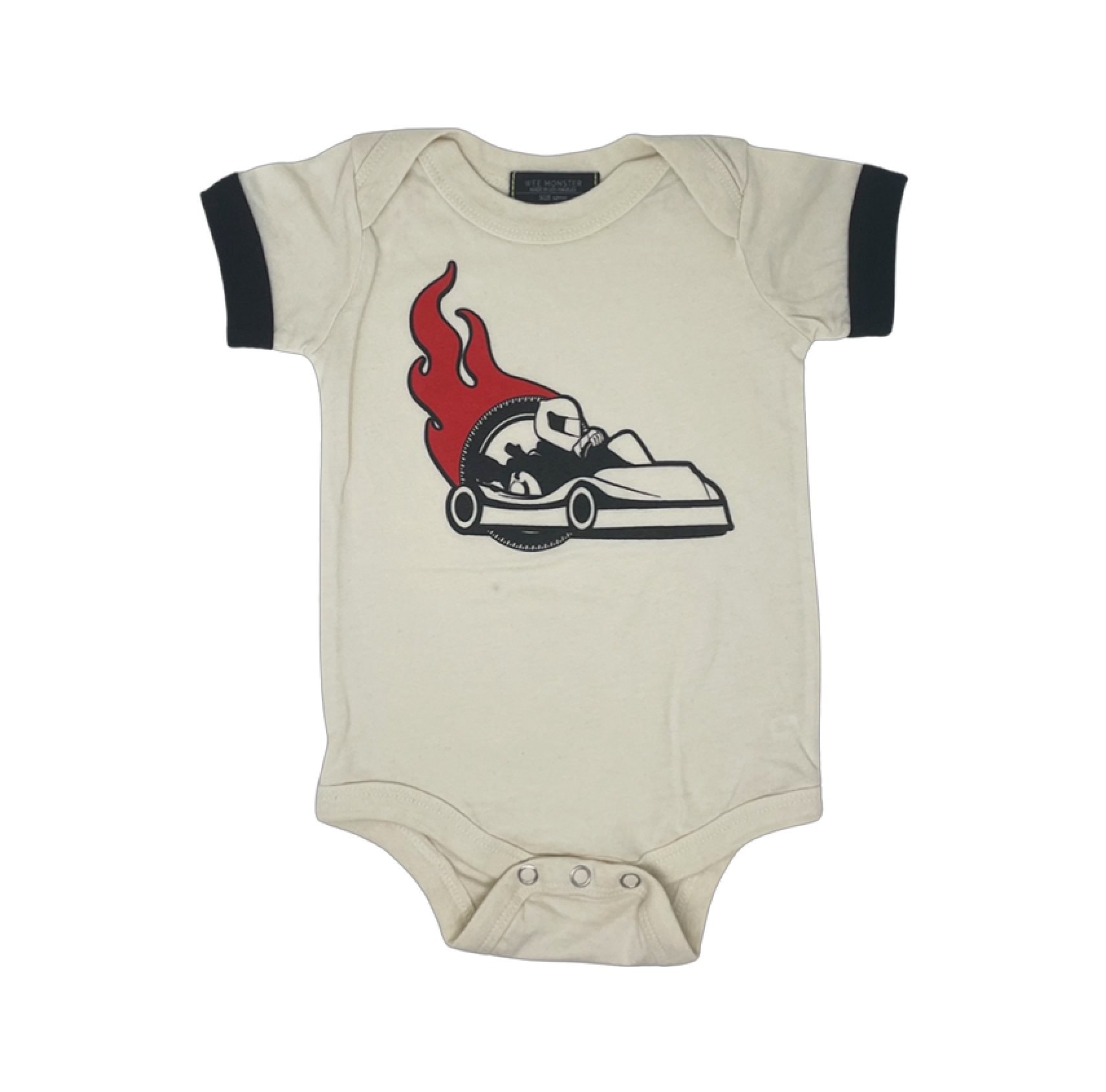 This onesie is made with pre-washed cotton that is soft as butter, perfect for your baby's delicate skin. It also features adorable race car graphics and ringer sleeves.