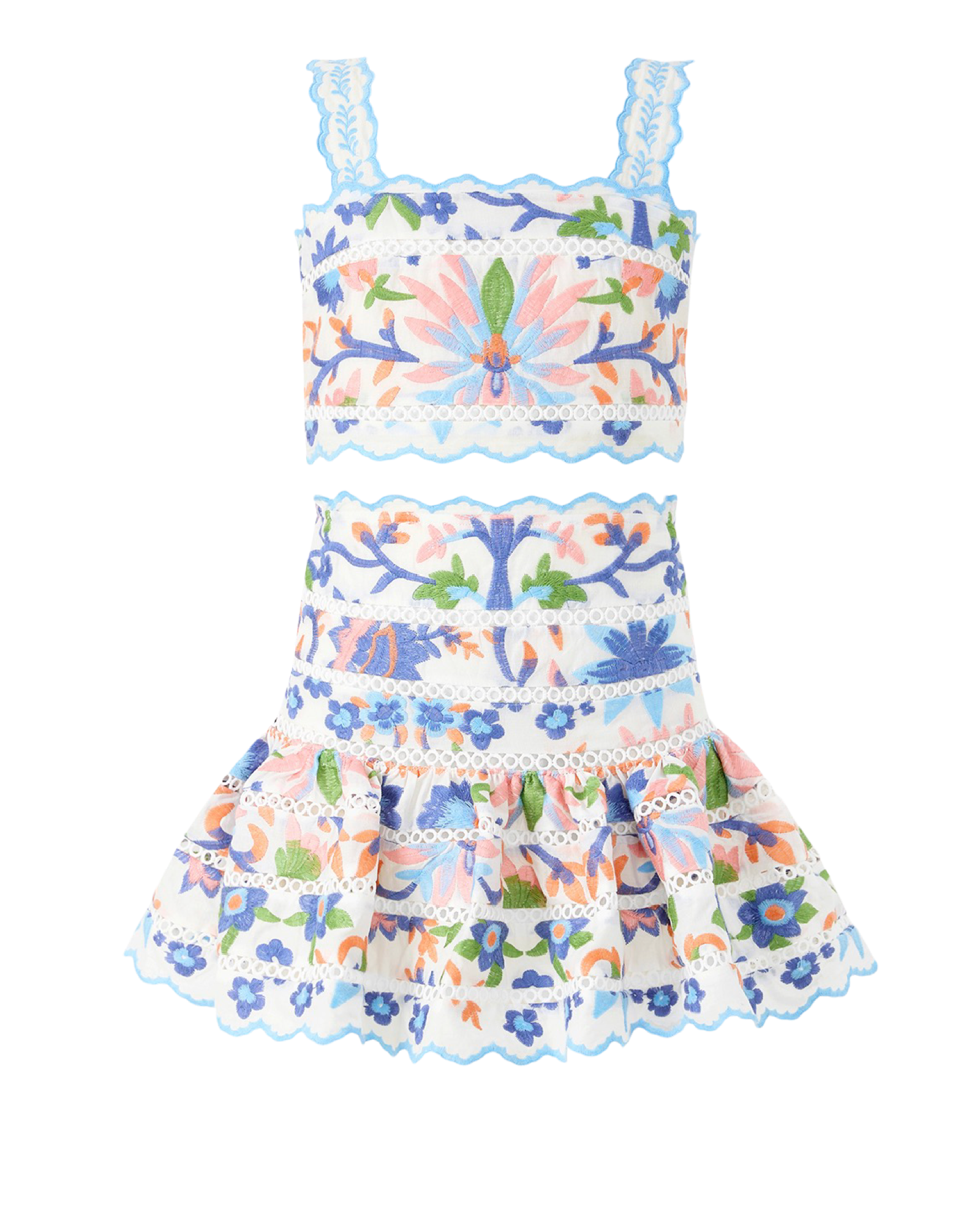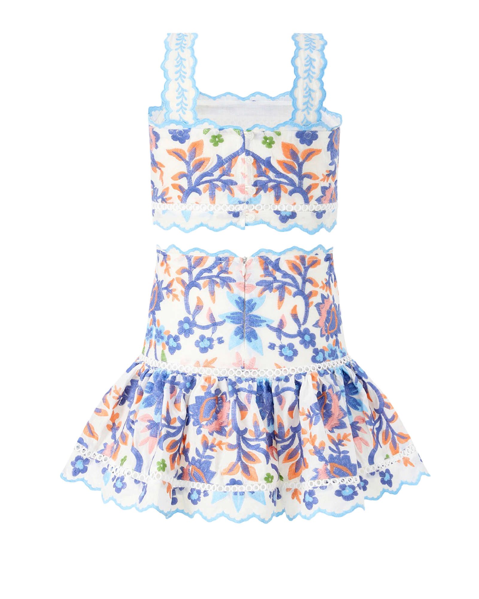 The Sarah Set is the perfect floral two-piece outfit for girls and tweens. Featuring a feminine floral print and tiered skirt, this stylish summer set is ideal for parties, vacations, and special occasions.