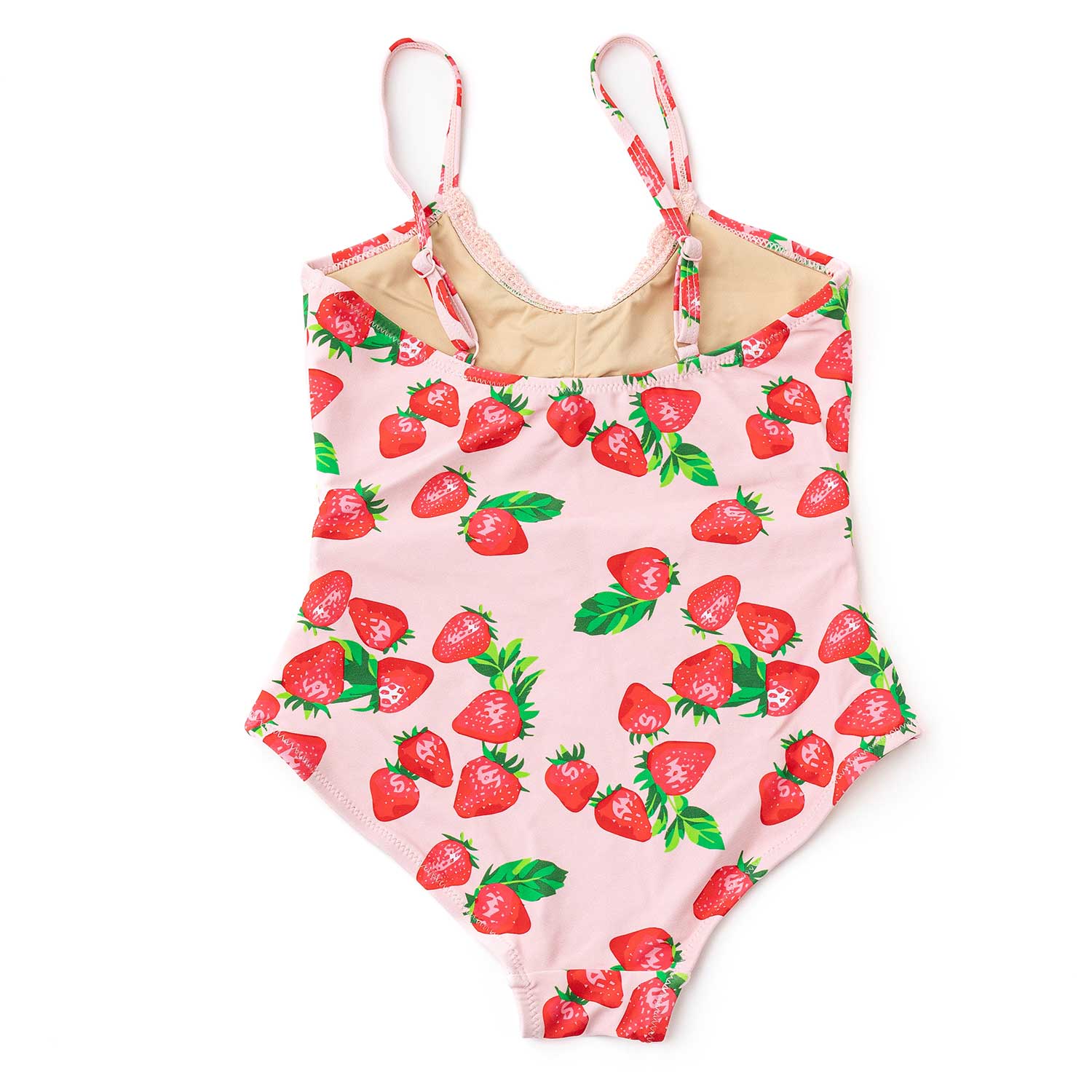 Dive into summer style with this adorable strawberry-themed one-piece! Featuring a vibrant fruit print that's perfect for little swimmers, it boasts delicate crochet detailing along the edges and adjustable straps for a custom fit as she grows. Fun, functional, and undeniably cute.
